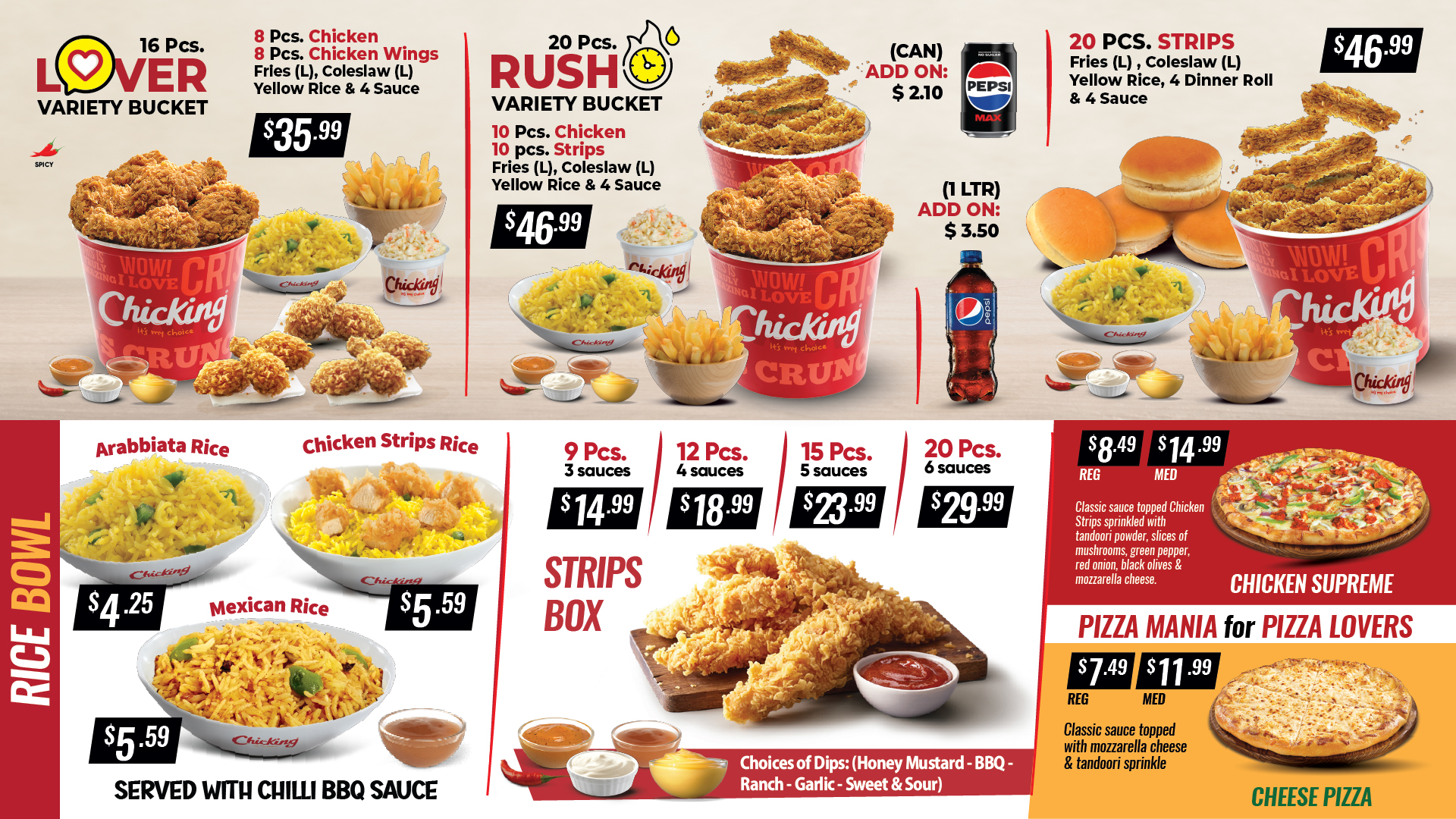 FROM A QUICK MEAL TO A FULL ON MEAL – DISCOVER WHAT CHICKING HAS TO OFFER. HOME OF ORIGINAL SPICY & GRILLED CHICKEN.